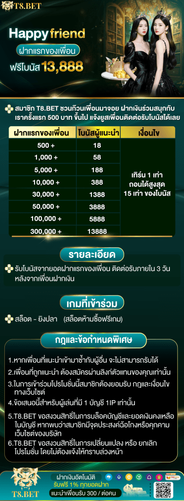 t8 • เครดิตฟรี สมาชิกใหม่รับ 100% ฝากแรกรับ 5% โหลดแอพรับ 888 แนะนำเพื่อนรับ 300