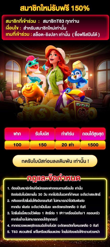 t83 • t83 สมาชิกใหม่ 150% และโปรอื่นๆ อีกมากมาย เว็บมาแรง 2026